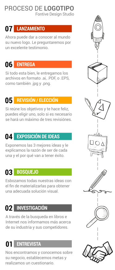 El diseño de un logotipo eficaz no es un proceso rápido ni fácil. Se requiere de un considerado tiempo, experiencia y varias etapas de desarrollo con el objetivo de asegurar que el diseño final del logotipo comunique el mensaje correcto y apunte al mercado apropiado.